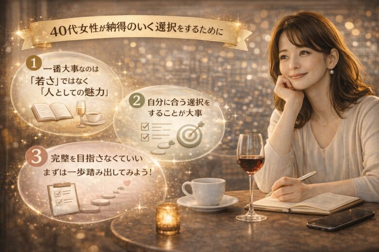 40代女性の場合「若さ」ではなく、マナーや気遣いなど「人としての魅力」で勝負しましょう。