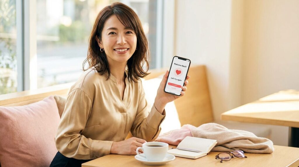といった傾向もあり、会って魅力が伝わりやすい40代女性と相性が良いアプリとも言えます。だからこそ、若作りよりも清潔感・明るさ・自分らしい雰囲気を意識していきましょう。