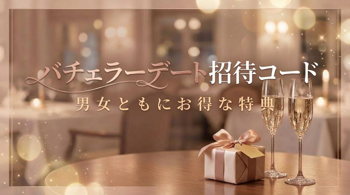 | 招待コード特典 | バチェラーチケット1枚 マッチング精度がUP (5,000円相当) | デートチケット1枚 初回デートを無料で体験 (8,000円相当) |