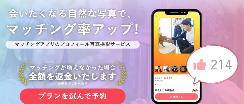バチェラーデートに限らず、マッチングアプリでは魅力的な写真が最重要。一度プロに撮ってもらえば、他のアプリでも使えるので、勝負写真を持っておくのは本当におすすめです!