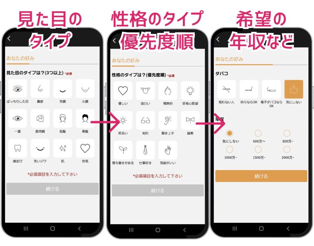 続けて、お相手の好みを入力していきます。