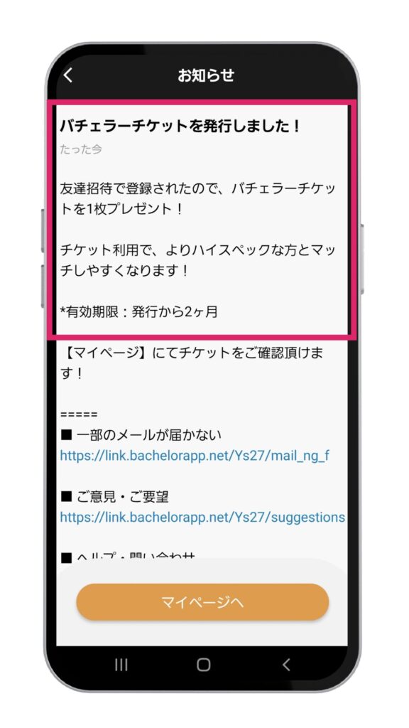 女性はもともとデートが無料なので、デートチケットではなく「バチェラーチケット」がもらえます。